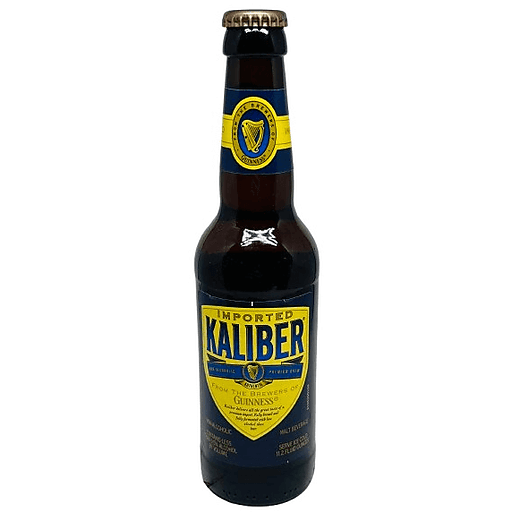 Imported. Premium brew. From the brewers of Guinness. Kaliber delivers all the great taste of a premium import. Fully brewed and fully fermented will less alcohol than beer. Non-alcoholic. Kaliber is a premium, non-alcoholic malt beverage from the makers of Guinness. The rich amber color and full-body delivers all the taste of a premium import with less alcohol than beer. Contains less than 0.5% alcohol by volume. Product of UK.