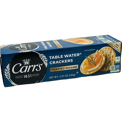 Delicious and delightfully crisp, Carr's Toasted Sesame Crackers are made with quality ingredients and baked to perfection for a flavorful, flaky bite that's irresistible on its own or when paired with your favorite toppings or dips. With a delicate texture and enticing flavor, these Toasted Sesame Table Water Crackers make a wonderful canvas for your favorite toppings and dips including cheeses, fruit preserves, deli meats, and more. Carr's Crackers are the perfect addition to party platters for any occasion, from elegant holiday celebrations to casual get-togethers. Stock your pantry with Carr's Crackers so you are always prepared for impromptu soirées with family and friends. The crackers are conveniently contained so you can take them along on picnics, to an outdoor concert, or any other everyday out-of-home occasion. With an authentic taste that can be enjoyed simple or dressed up, at casual gatherings or sophisticated festivities, Carr's Crackers help make everyday moments better.