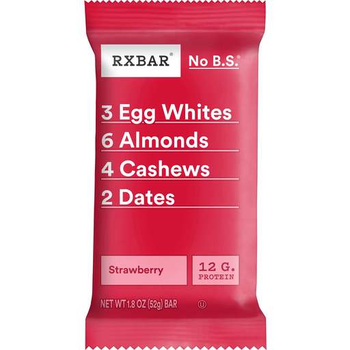 Our Strawberry Protein Bars are made with just five ingredients: dates, egg whites, almonds, cashews, and sweet, juicy strawberries. This gluten free, guilt-free protein bar is the perfect wholesome snack for any active lifestyle. Each bite is bursting with real strawberry flavor combined with simple, real ingredients. Enjoy 12g of protein per bar (22% daily value) and 0g added sugar (not a low-calorie food, see nutrition facts for sugar and calorie content); Savor this protein bar at breakfast time, lunch time, or as a pre- or post-workout snack. Devour the whole bar or save some for later, each bar is an on-the-go protein snack packed with fuel to help you make it through your day. Other protein bars, energy bars, and breakfast bars just can’t compare to the taste of only a few better-for-you ingredients. What you see is what you get with RXBAR Strawberry Protein Bars
